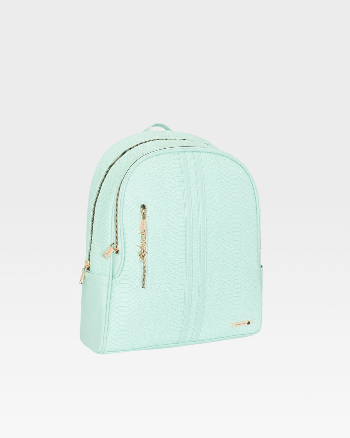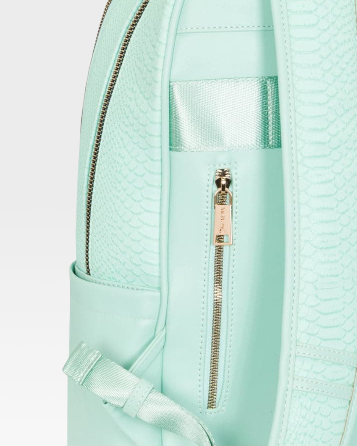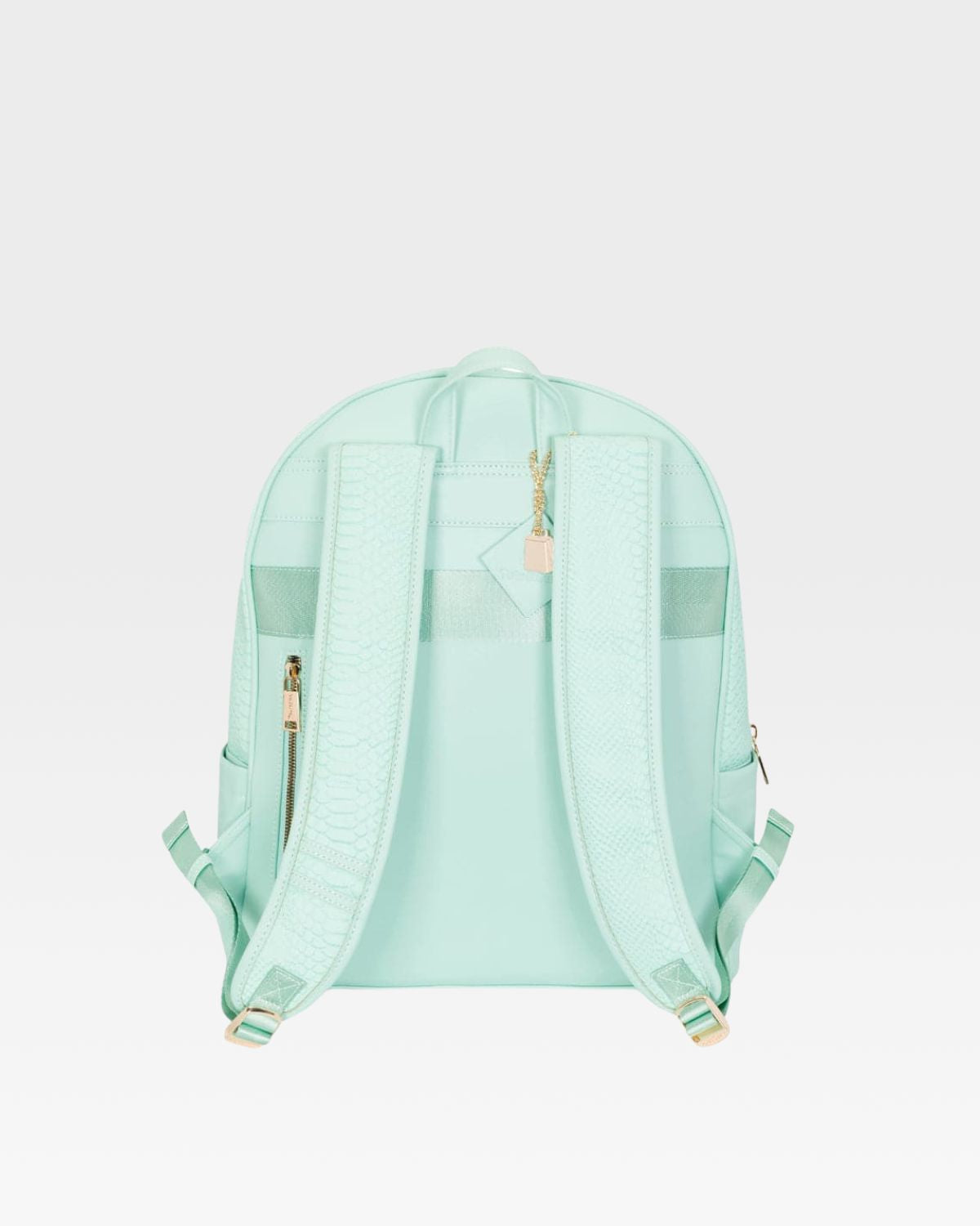 The Apollo 1 Backpack & Rolling Duffle Bag Set in Mint is the ultimate travel companion for the style-conscious adventurer. Crafted from premium faux snakeskin leather in a refreshing mint hue, this set exudes elegance and sophistication. The spacious backpack is perfect for daily commutes or short trips, featuring multiple organizational pockets, and comfortable adjustable straps. The rolling duffle bag is ideal for weekend getaways or longer journeys, offering ample storage space, smooth-rolling wheels, a retractable handle, and sturdy side handles for versatile carrying options.
