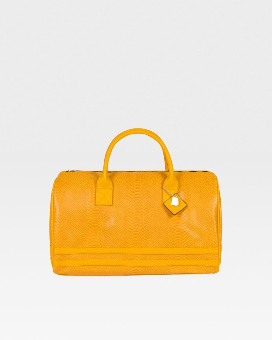 The Apollo 1 BFF Travel Set in Mustard is the epitome of timeless elegance. Crafted from premium faux snakeskin leather in a rich mustard hue, this set exudes sophistication and style. The sleek backpack is perfect for daily commutes or short trips, featuring a spacious main compartment, a padded laptop sleeve, and multiple organizational pockets. The spacious duffel bag is ideal for weekend getaways or longer journeys, offering ample storage, sturdy handles, and a detachable shoulder strap for versatile carrying options.