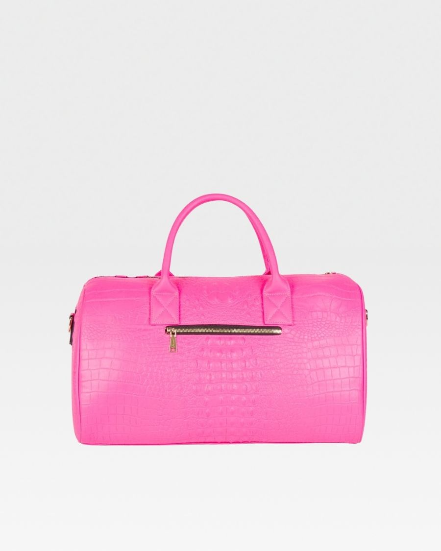 Tote&Carry Neon Pink Apollo 2 Faux?Crocodile Skin Duffle Bag