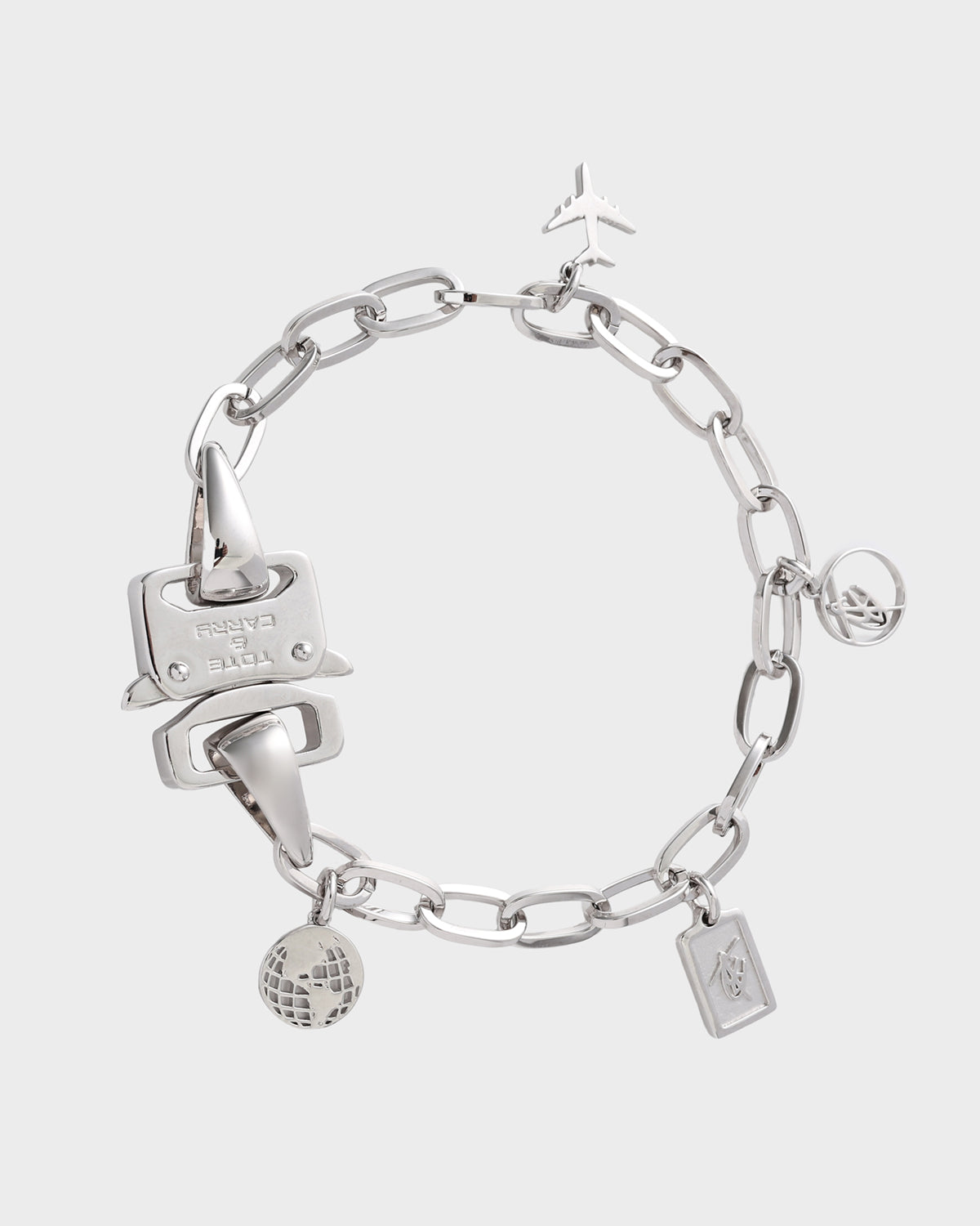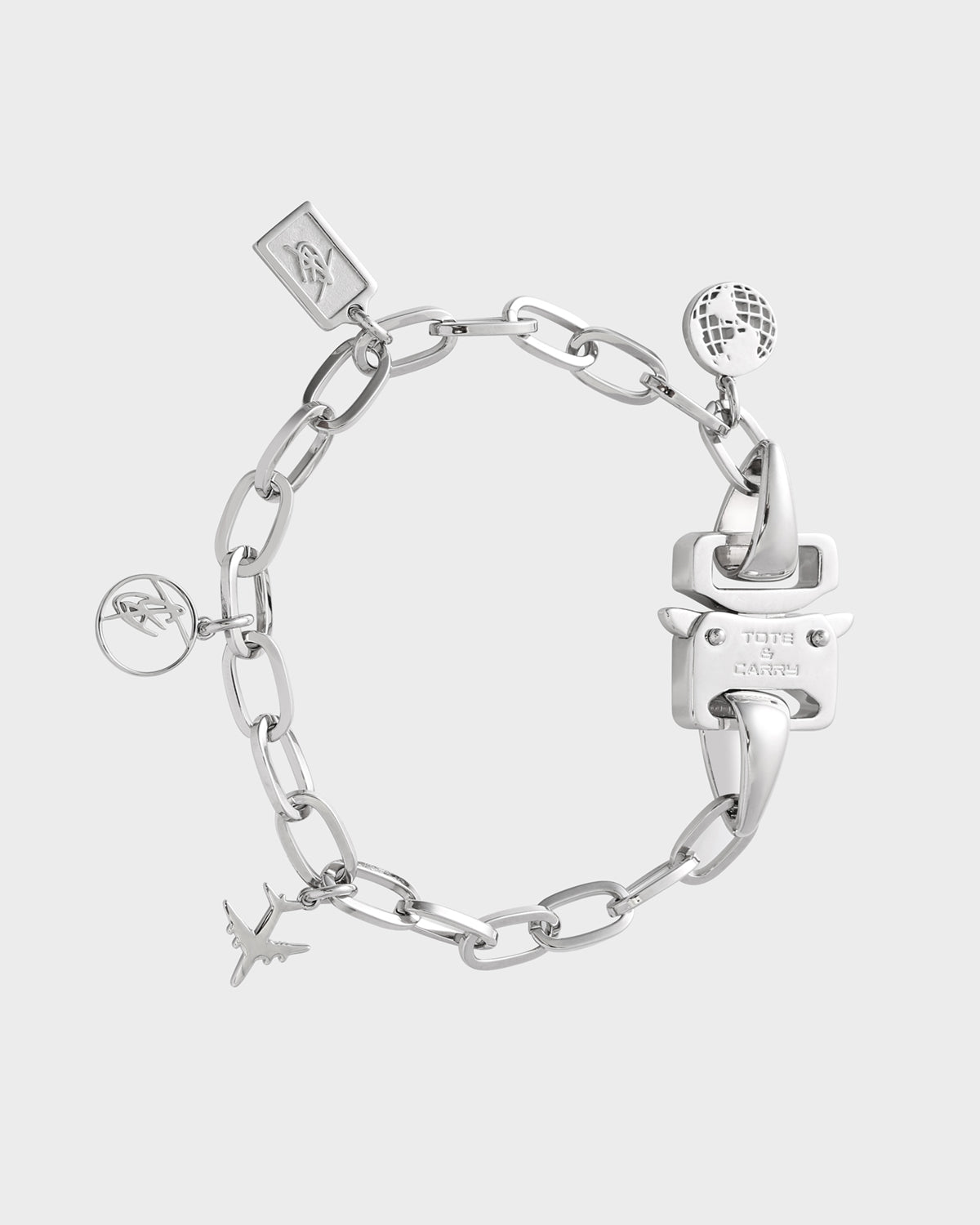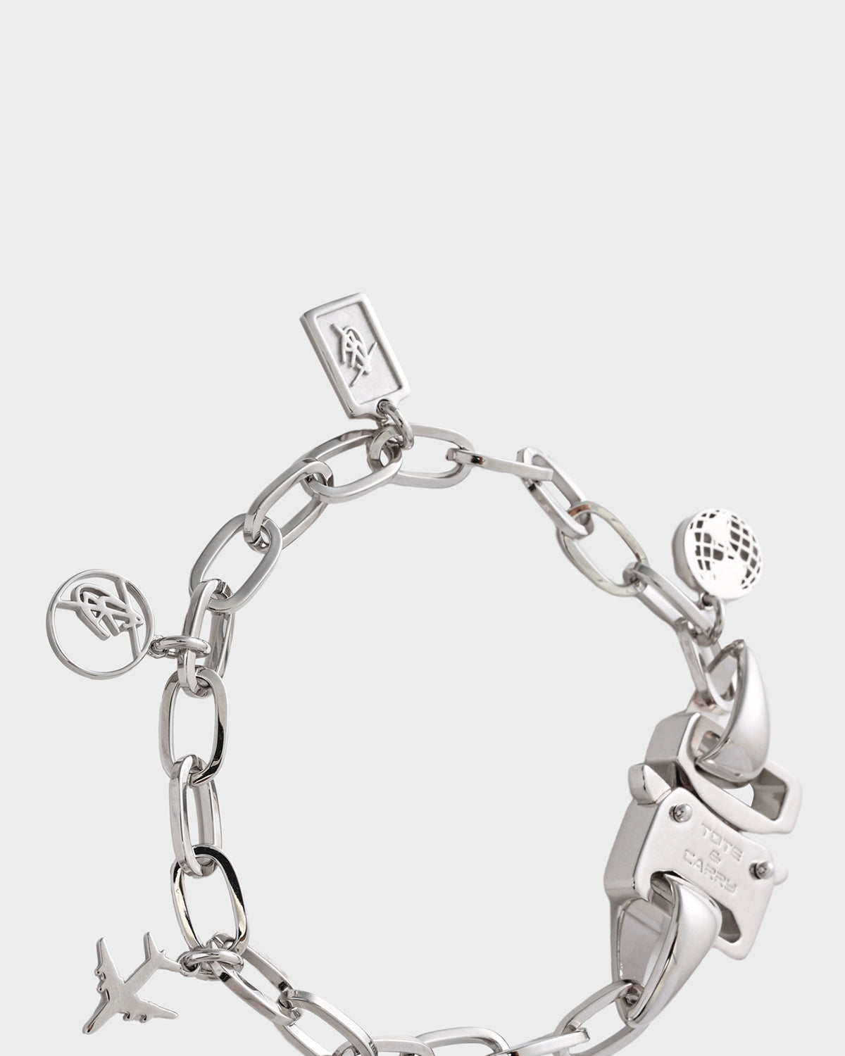 A Timeless Treasure! This exquisite Charm Bracelet in Silver is a perfect blend of classic and contemporary style. Crafted with meticulous attention to detail, this bracelet features a delicate chain adorned with charming pendants, including a globe, airplane, and T&C signature logo. Each pendant tells a story, making this bracelet not just a piece of jewelry, but a personal keepsake.