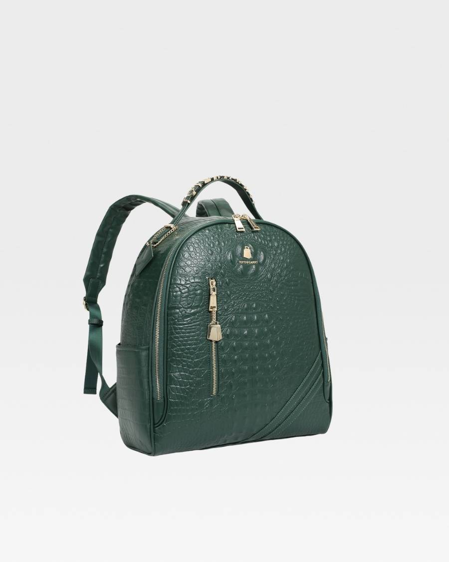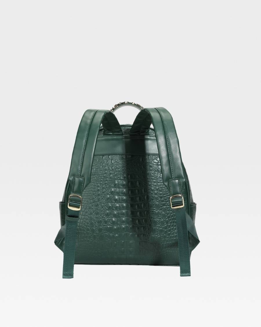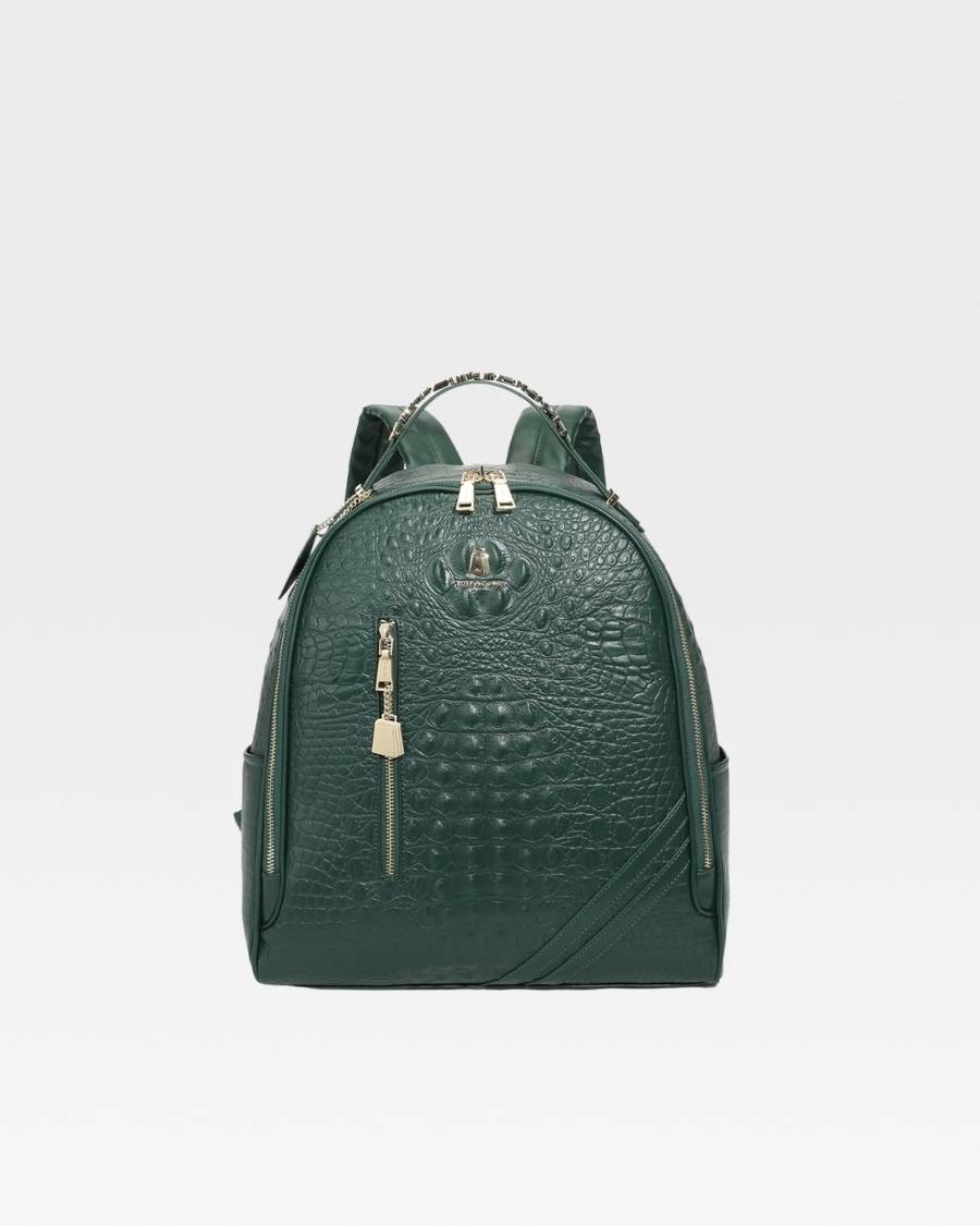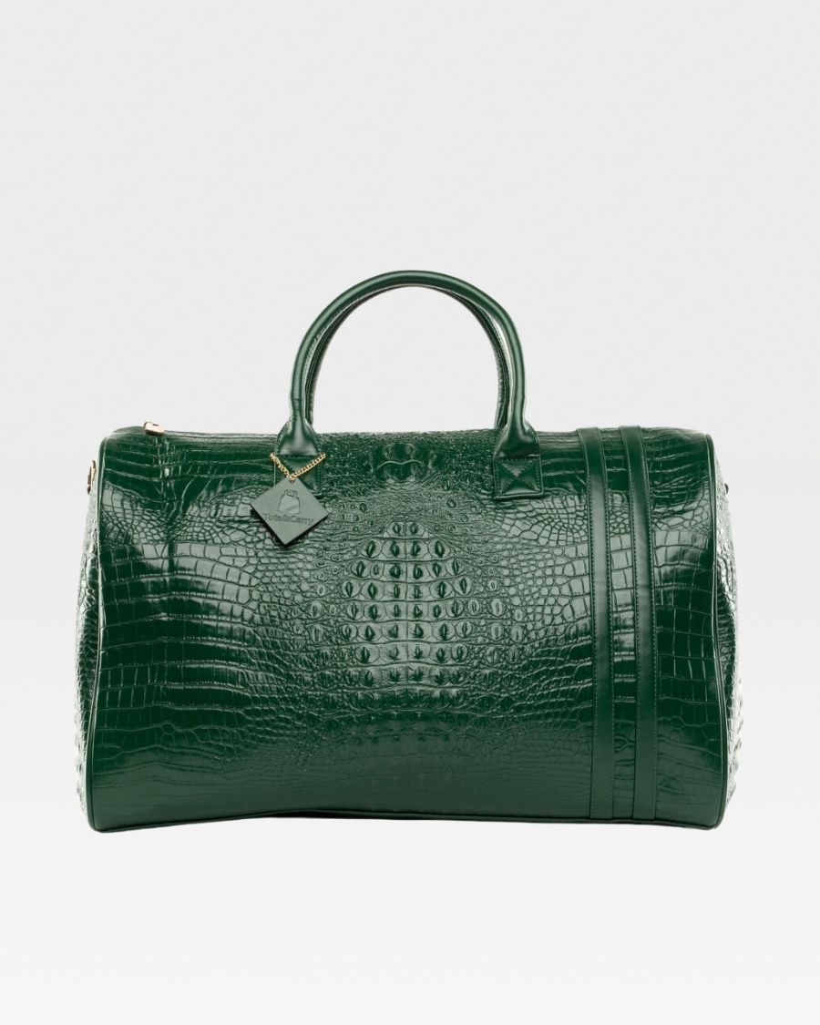 Enjoy your travels with the Emerald Green Apollo 2 BFF Faux Snakeskin Travel Set. This chic set includes a BFF backpack and a spacious duffle bag, perfect for all your travel needs. Made with eco-friendly materials, both pieces provide multiple pockets for convenient storage. Gold zipper accents and thoughtful design details make this set your perfect travel companion.