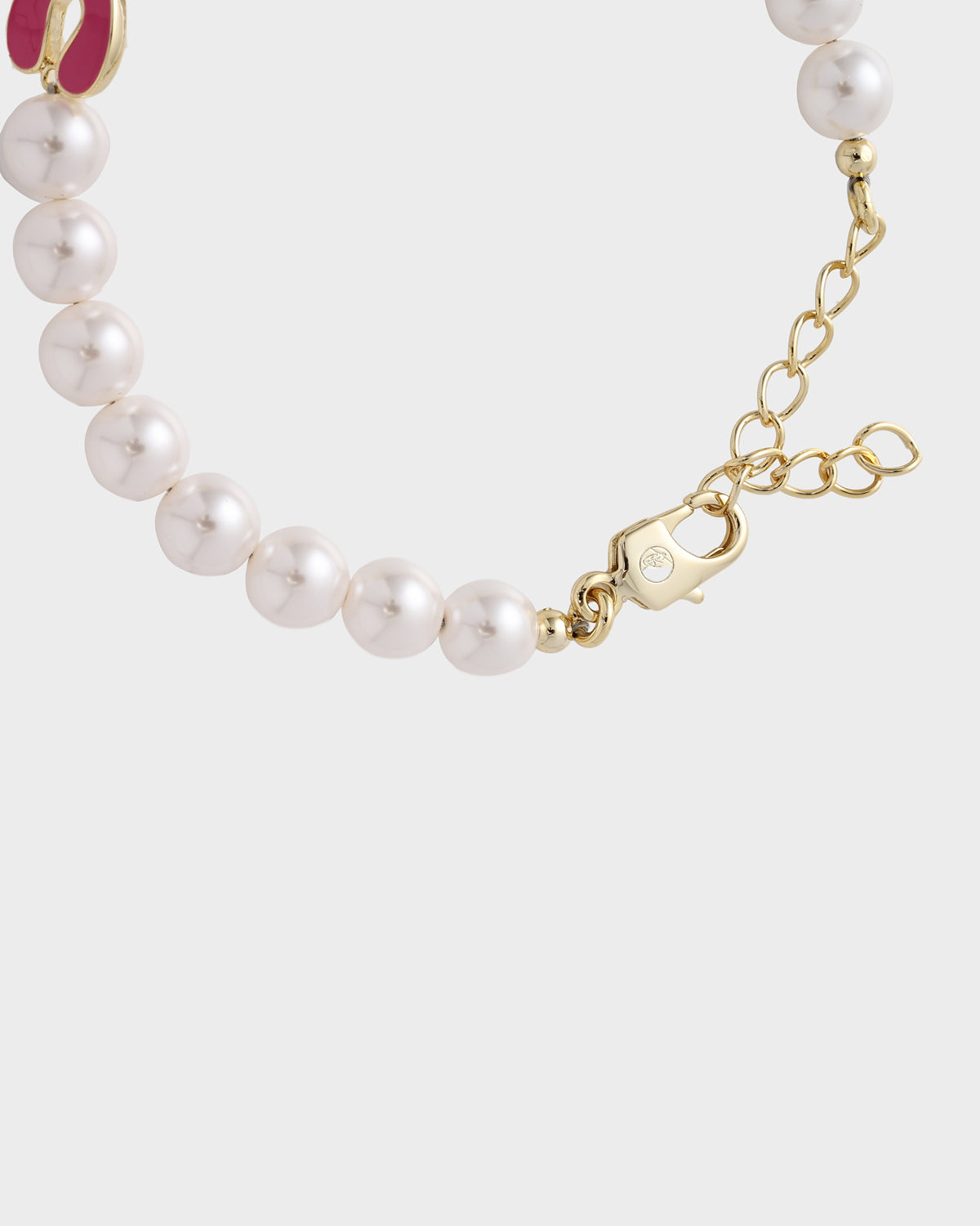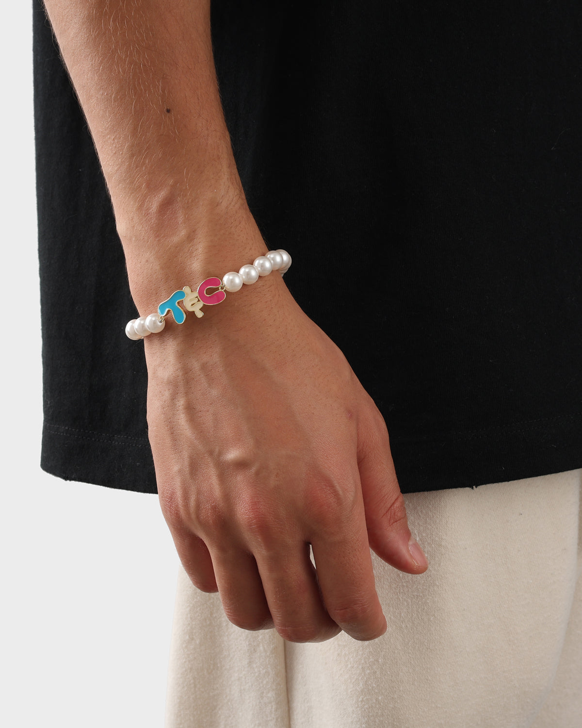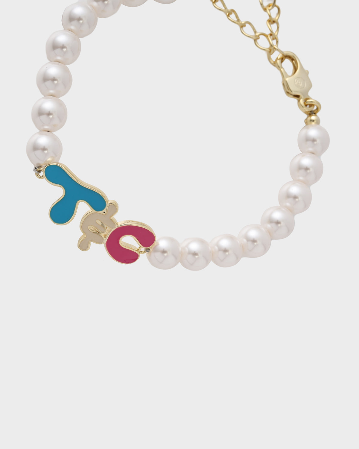 A Timeless Classic! This elegant Pearl Bracelet is a perfect blend of classic and contemporary style. Crafted with meticulous attention to detail, this bracelet features a delicate chain of lustrous pearls, adorned with a playful T&C charm. The contrast between the timeless elegance of the pearls and the playful charm adds a unique touch to this classic piece.
