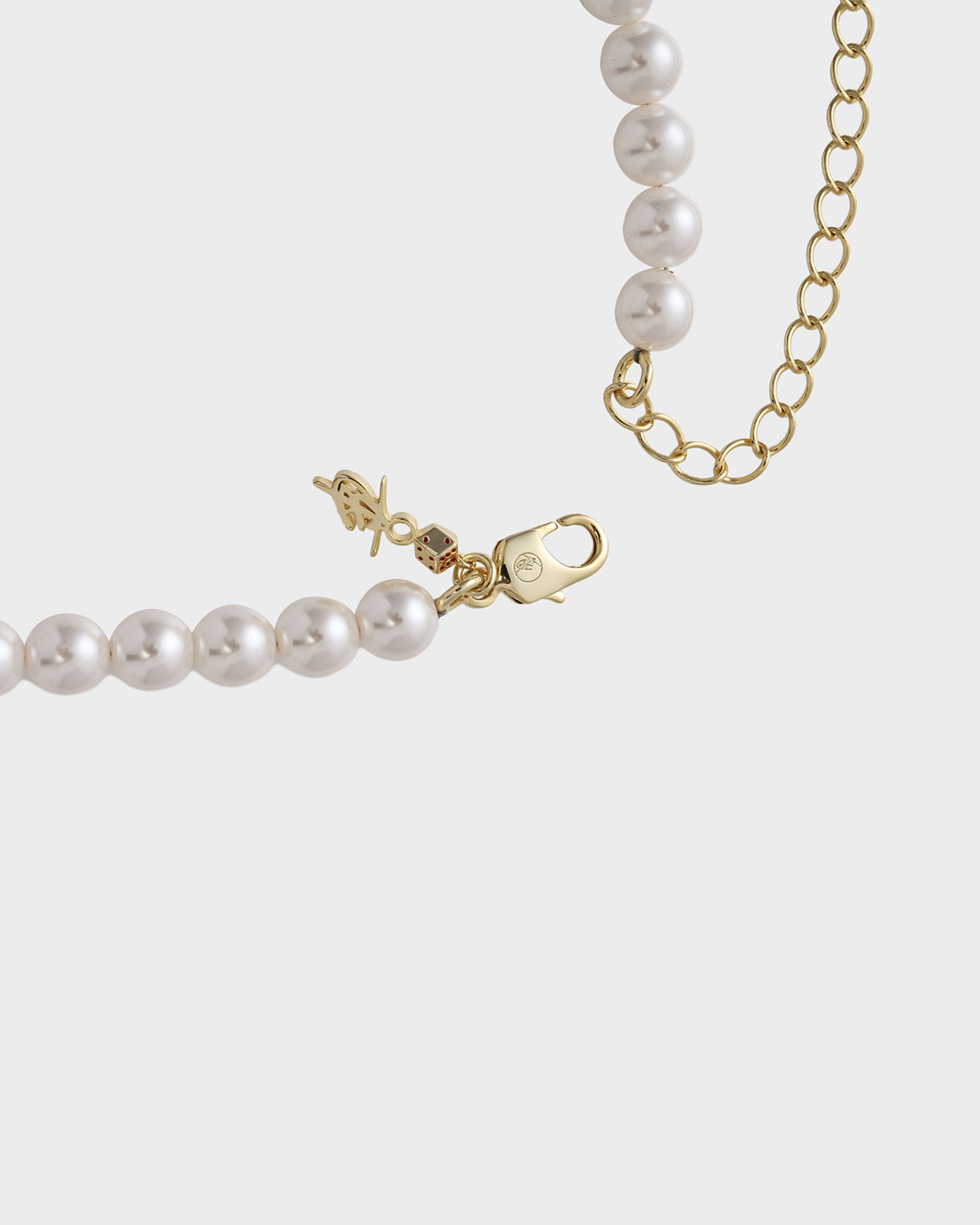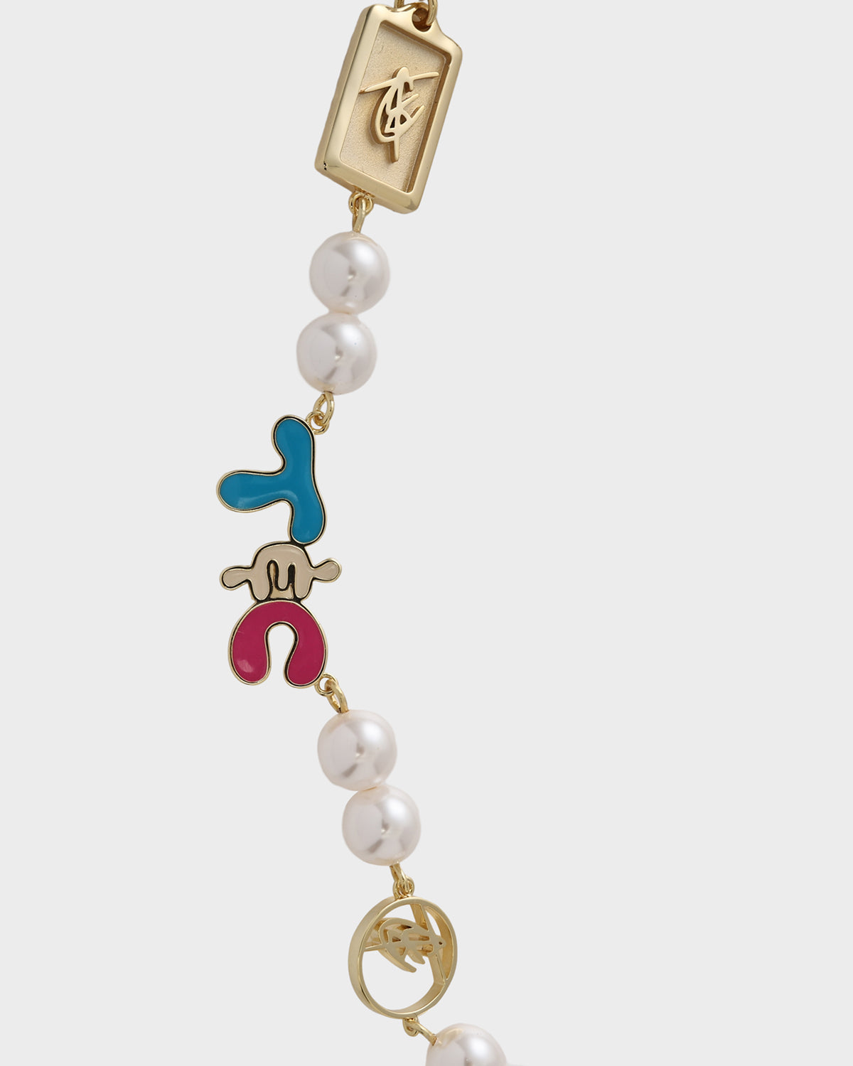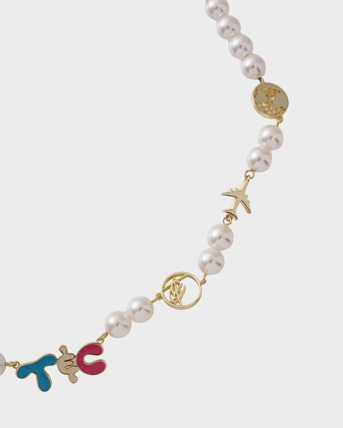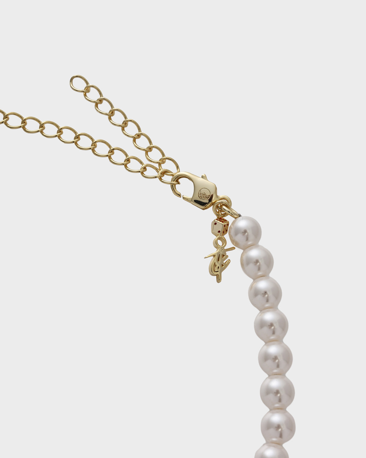 A Timeless Classic! This elegant Pearl Necklace is a perfect blend of classic and contemporary style. Crafted with meticulous attention to detail, this necklace features a delicate chain of lustrous pearls, adorned with playful charms. The contrast between the timeless elegance of the pearls and the playful charm adds a unique touch to this classic piece.