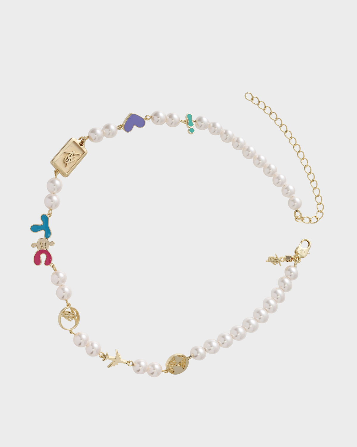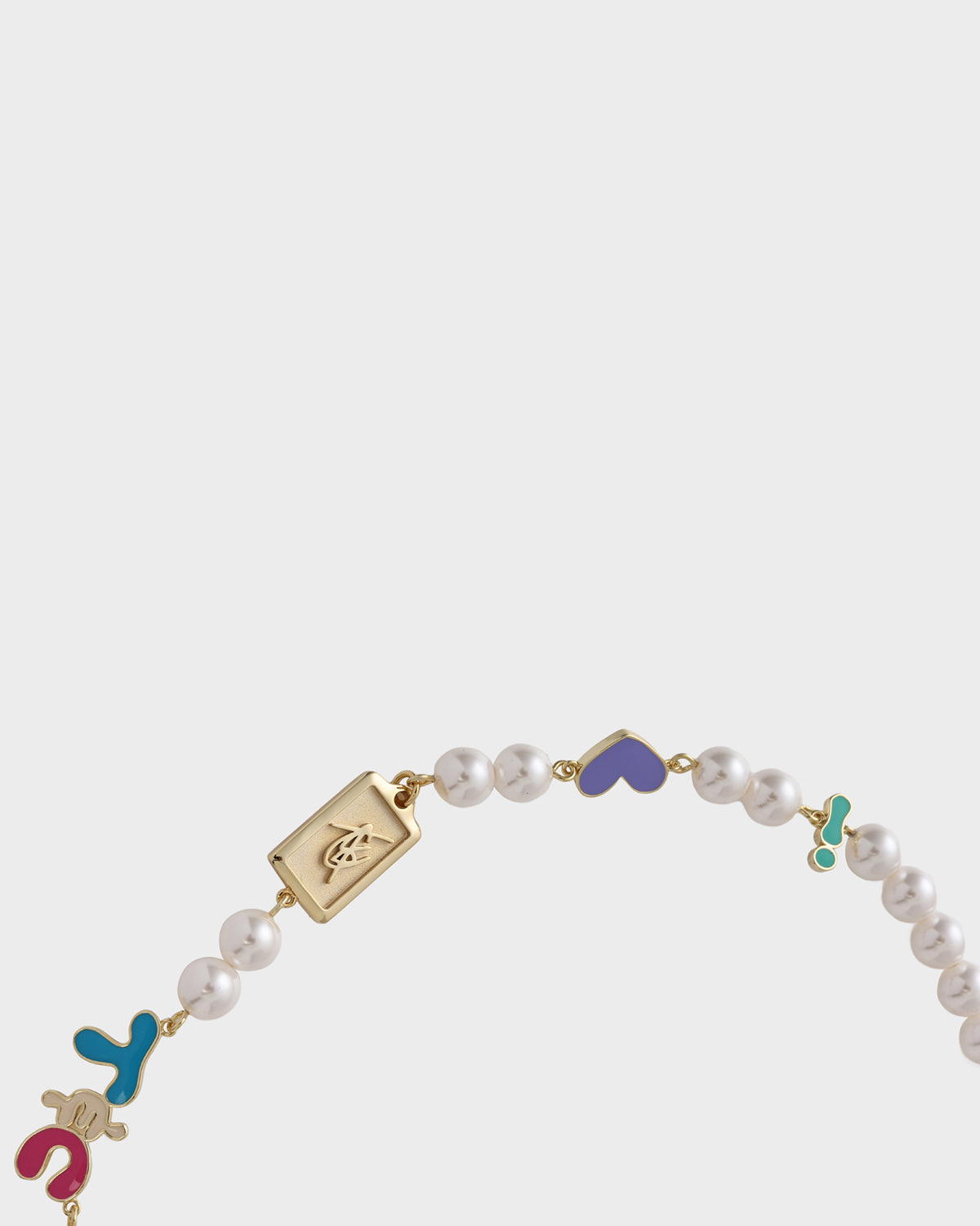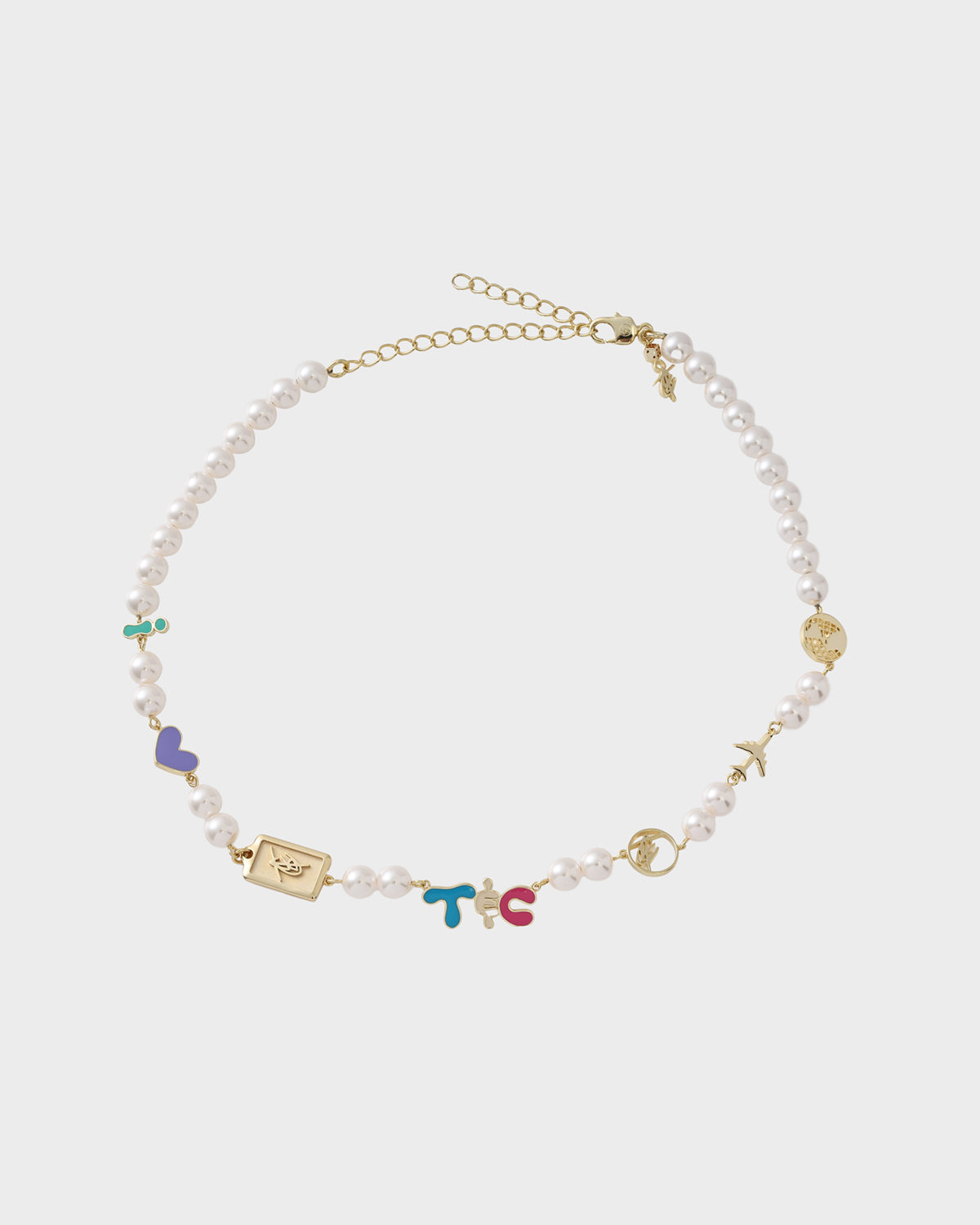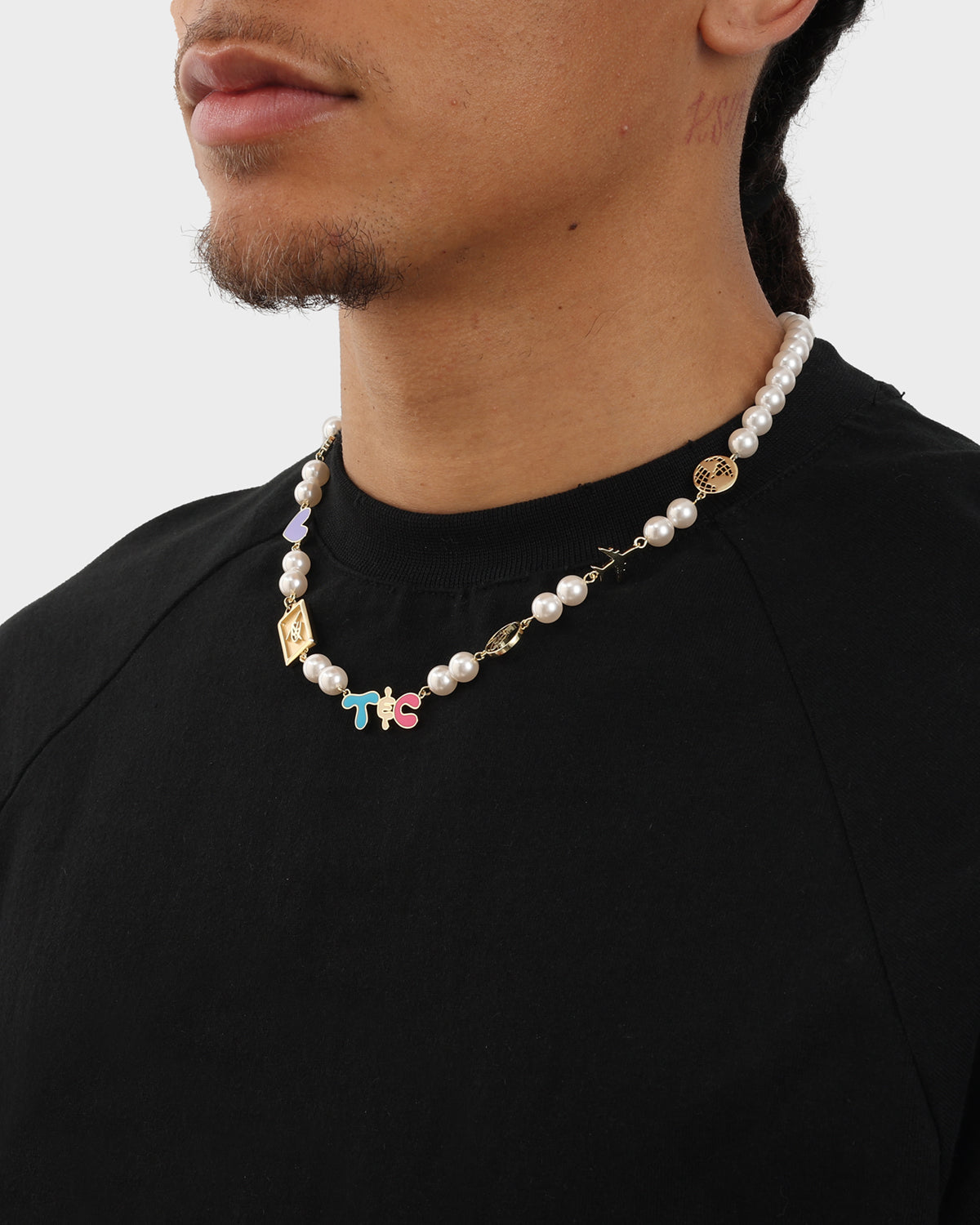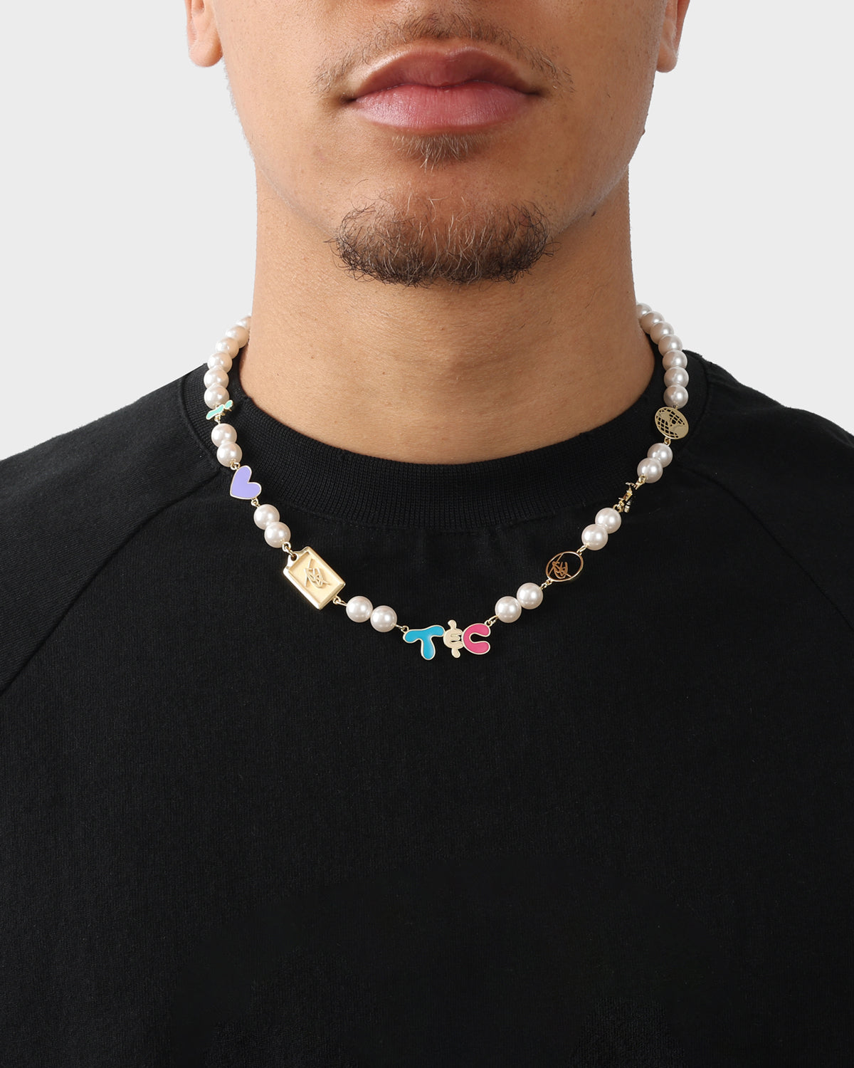 A Timeless Classic! This elegant Pearl Necklace is a perfect blend of classic and contemporary style. Crafted with meticulous attention to detail, this necklace features a delicate chain of lustrous pearls, adorned with playful charms. The contrast between the timeless elegance of the pearls and the playful charm adds a unique touch to this classic piece.